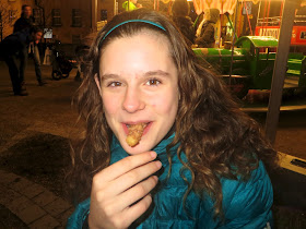 This afternoon, we took the short ferry ride over to Waterford (as in Waterford Crystal), to take in the sights and fun of their winter festival (that's winter + festival = "Winterval," see?), where we ate junk food, rode carnival rides, and found a little Christmas cheer.  Our first stop was a night club/bar that has given itself a day job during the holidays. They have free showings of the movie "Elf" throughout the day while Winterval is going on. If popcorn, hot chocolate, and a giant elf named Buddy can't put you in the Christmas spirit, then nothing really can. From there, we headed over to the Helter Skelter slide--a twisty slide two stories high, which the kids descend on a mat, to maximize velocity. I couldn't even look at it without thinking of one of my favorite scenes in "A Christmas Story."